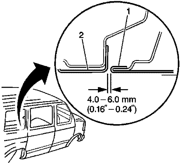 Inspect the rear sliding door for flushness to the rear quarter panel or inwards 1 to 2 mm (0.039 to 0.078 in).