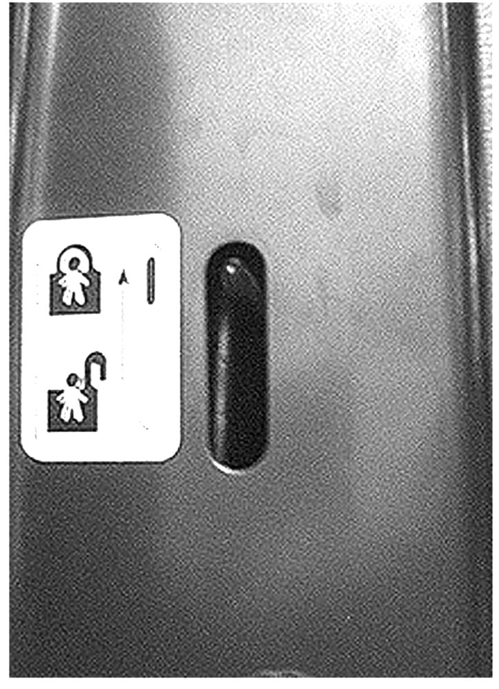 A yellow clip should be visible and accessible from inside the door.