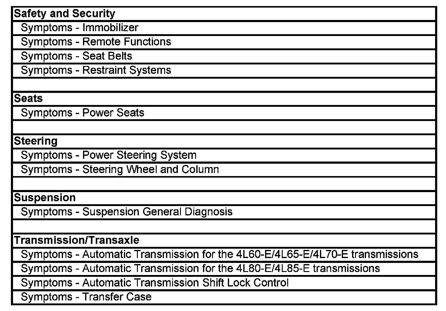 Symptoms - Vehicle
