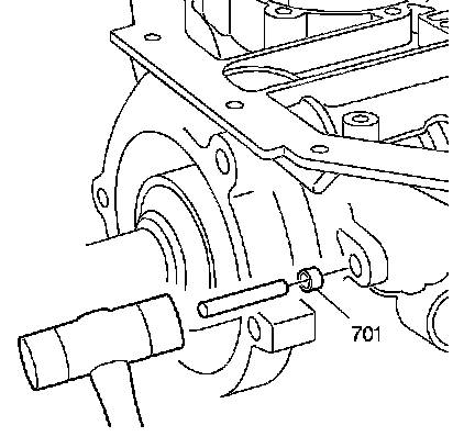 4. Apply sealer GM P/N 12345382 or equivalent, to the parking pawl shaft hole plug (701).