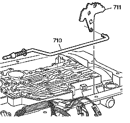 6. Assemble the manual shift shaft detent lever assembly (711) to the parking pawl actuator assembly (710).