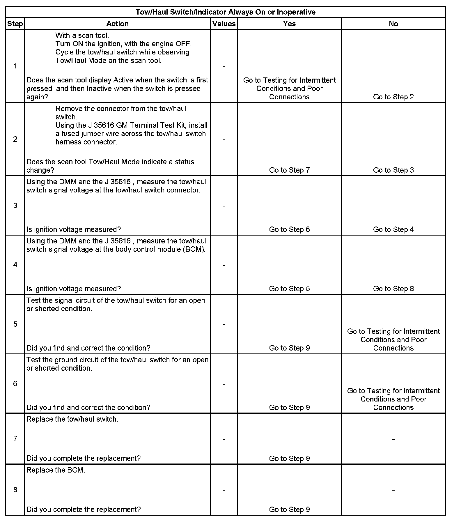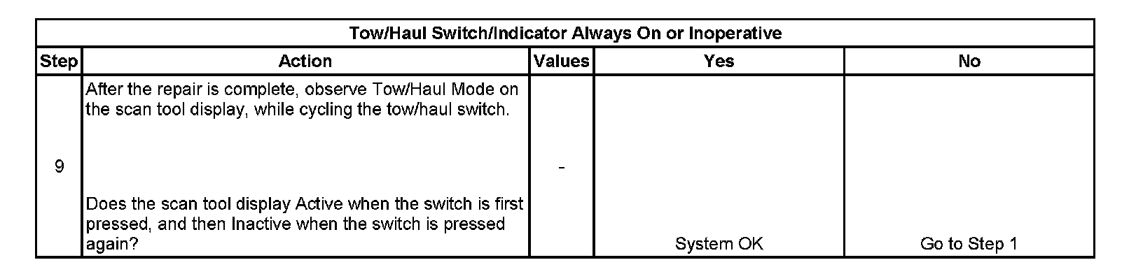 Tow/Haul Switch/Indicator Always On or Inoperative
