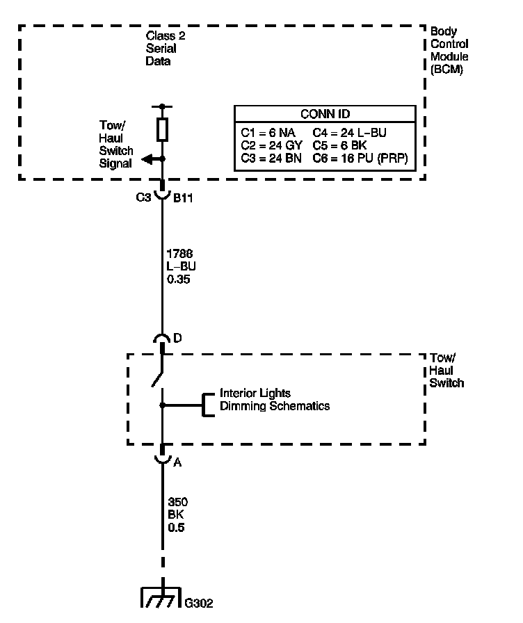 Tow/haul mode enables the operator to achieve enhanced shift performance when towing or hauling a load. When tow/haul mode is selected, the tow/haul switch input signal to the body control module (BCM) is momentarily toggled to zero volts. This signals the powertrain control module (PCM) or the transmission control module (TCM) to extend the length of time between upshifts and increase transmission line pressure. Cycling the tow/haul switch again disables tow/haul mode and returns the transmission to a normal shift pattern.