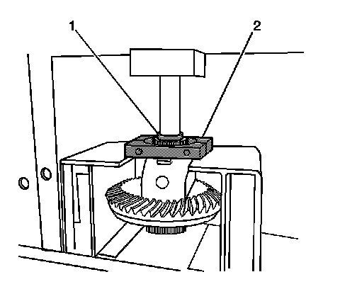 2. For the 8.6 inch axle and 10.5 inch axle with RPO G80, remove the differential side bearing by performing the following steps: