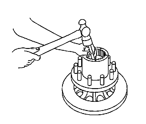 13. Remove the inner hub bearing cup using a brass drift and a hammer.
