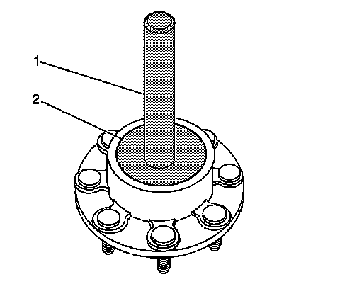 6. Turn the wheel hub over and seat the outer bearing assembly against the retaining ring using the J 24426 (2) and the J 8092 (1).