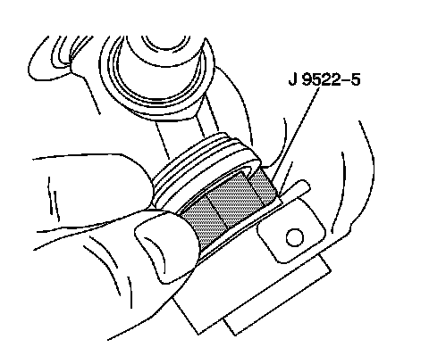 4. In order to shear the plastic retaining ring on the bearing cup, place J 9522-3 on the open horizontal bearing cups. Press the lower bearing cup out of the yoke ear.