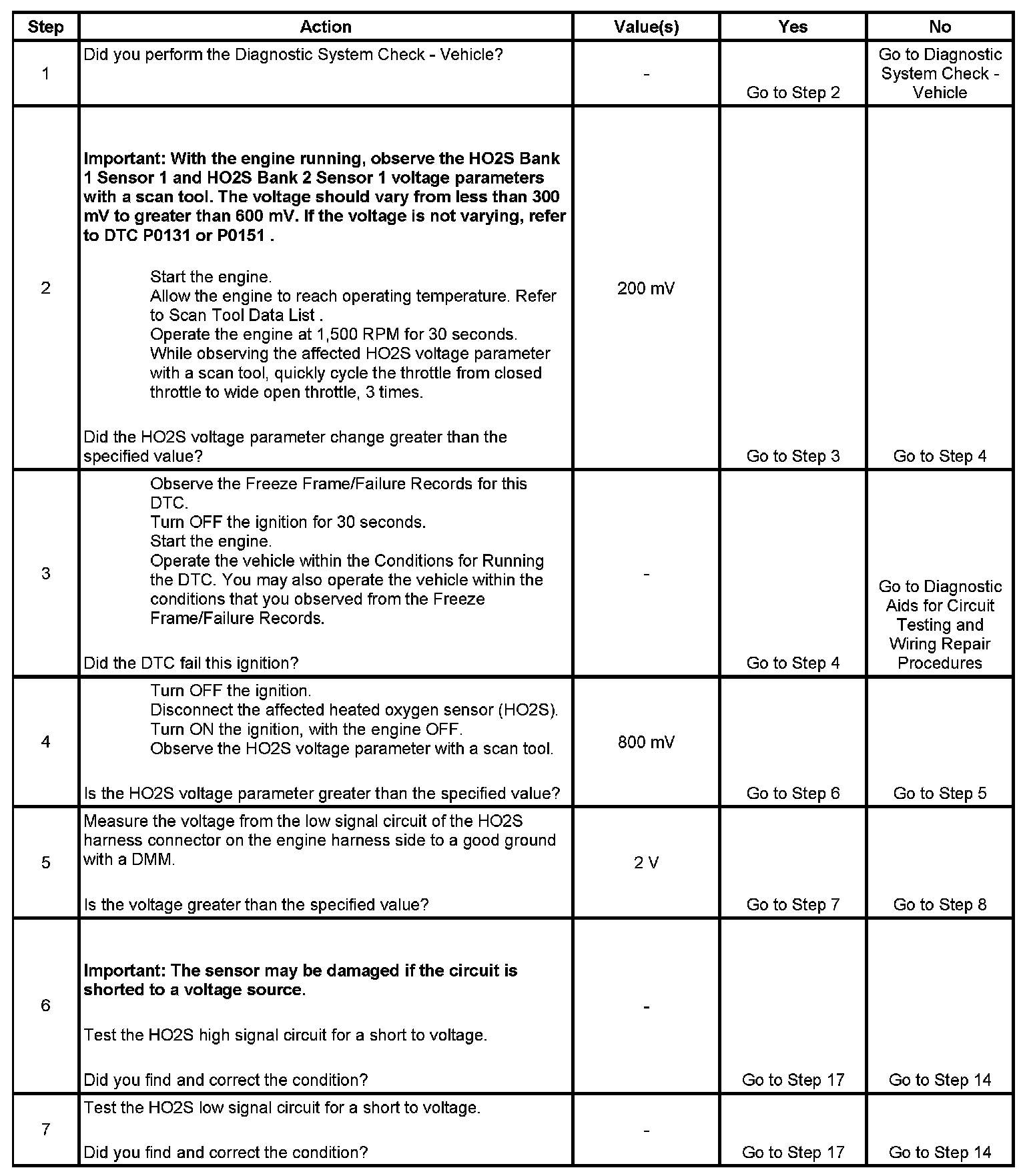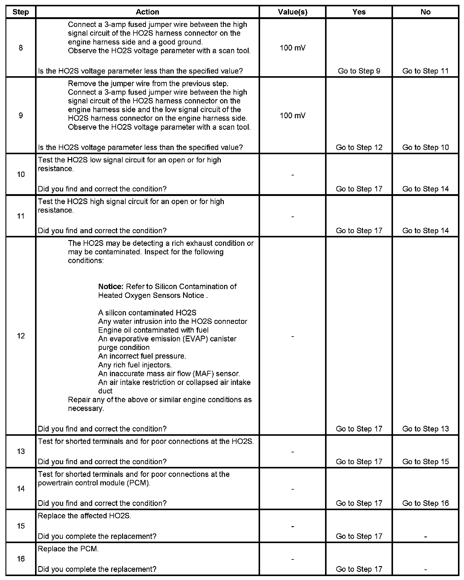 2. If the voltage does not change more that the specified value, the condition is present.