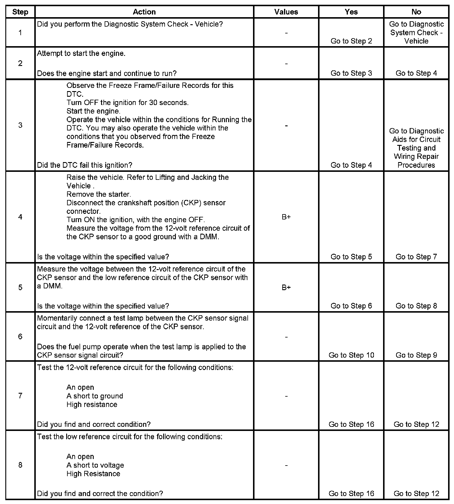 6. This step simulates a CKP sensor signal to the PCM. If the PCM receives the signal, the fuel pump will operate for about 2 seconds.