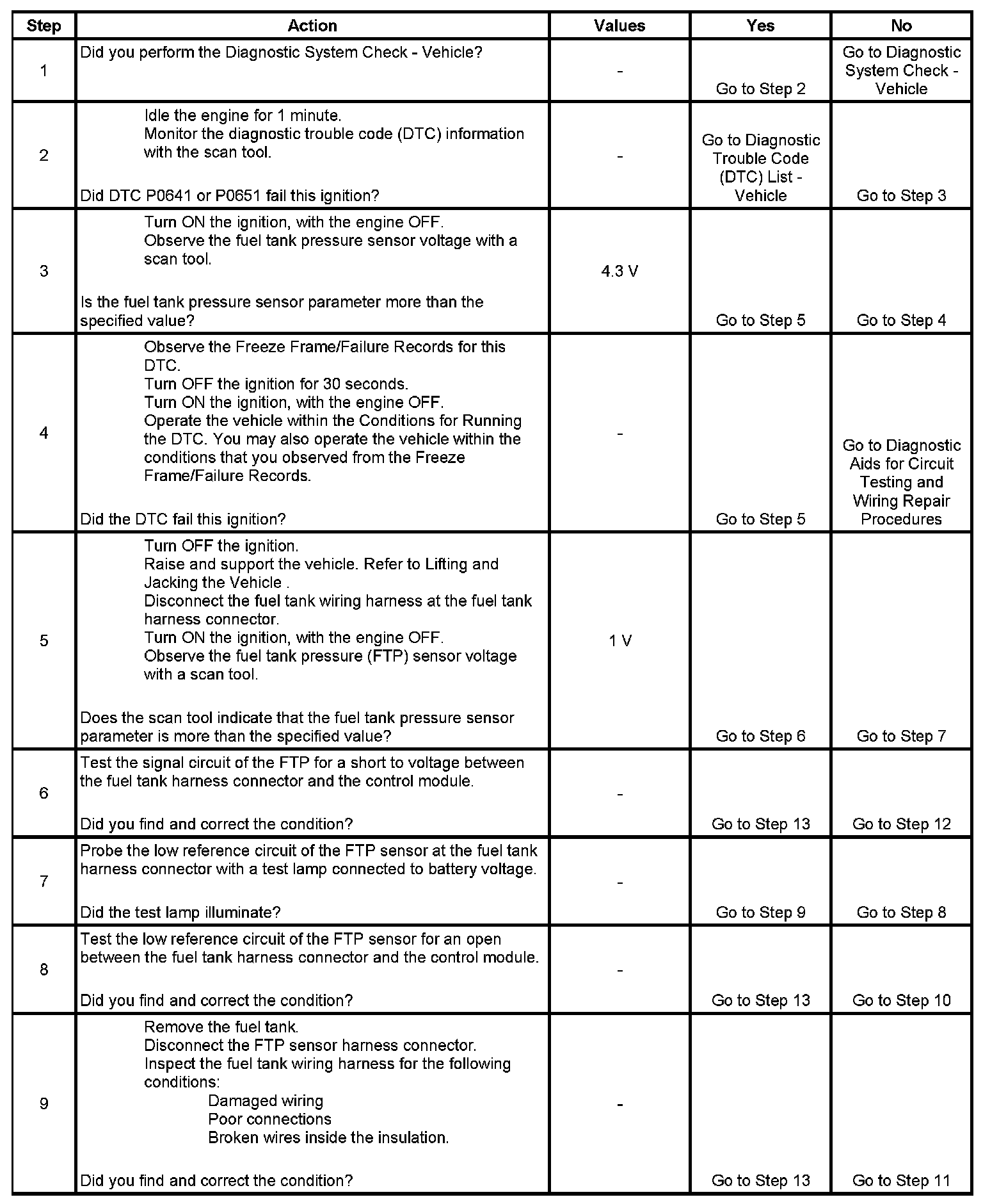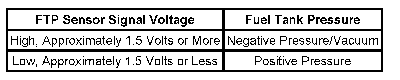 The following table illustrates the relationship between FTP sensor signal voltage and the EVAP system pressure/vacuum.