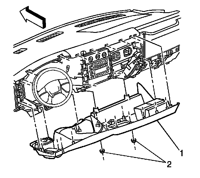1. Align the trim plate bezel to the instrument panel (I/P) (1).