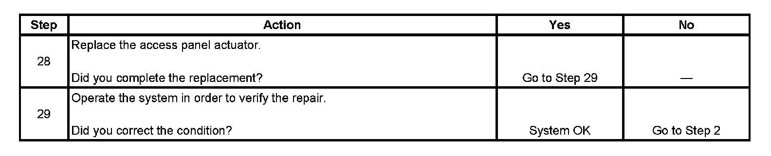 ONE ACCESS PANEL INOPERATIVE
