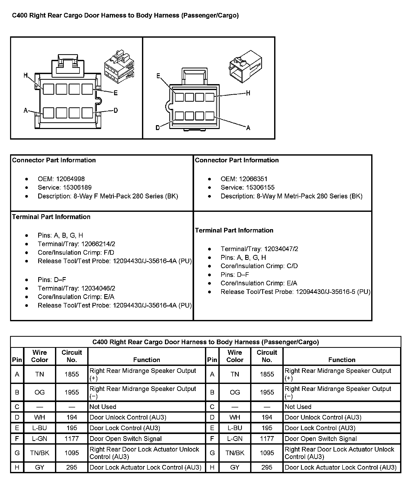 C400 Right Rear Cargo Door Harness To Body Harness (Passenger/Cargo):
