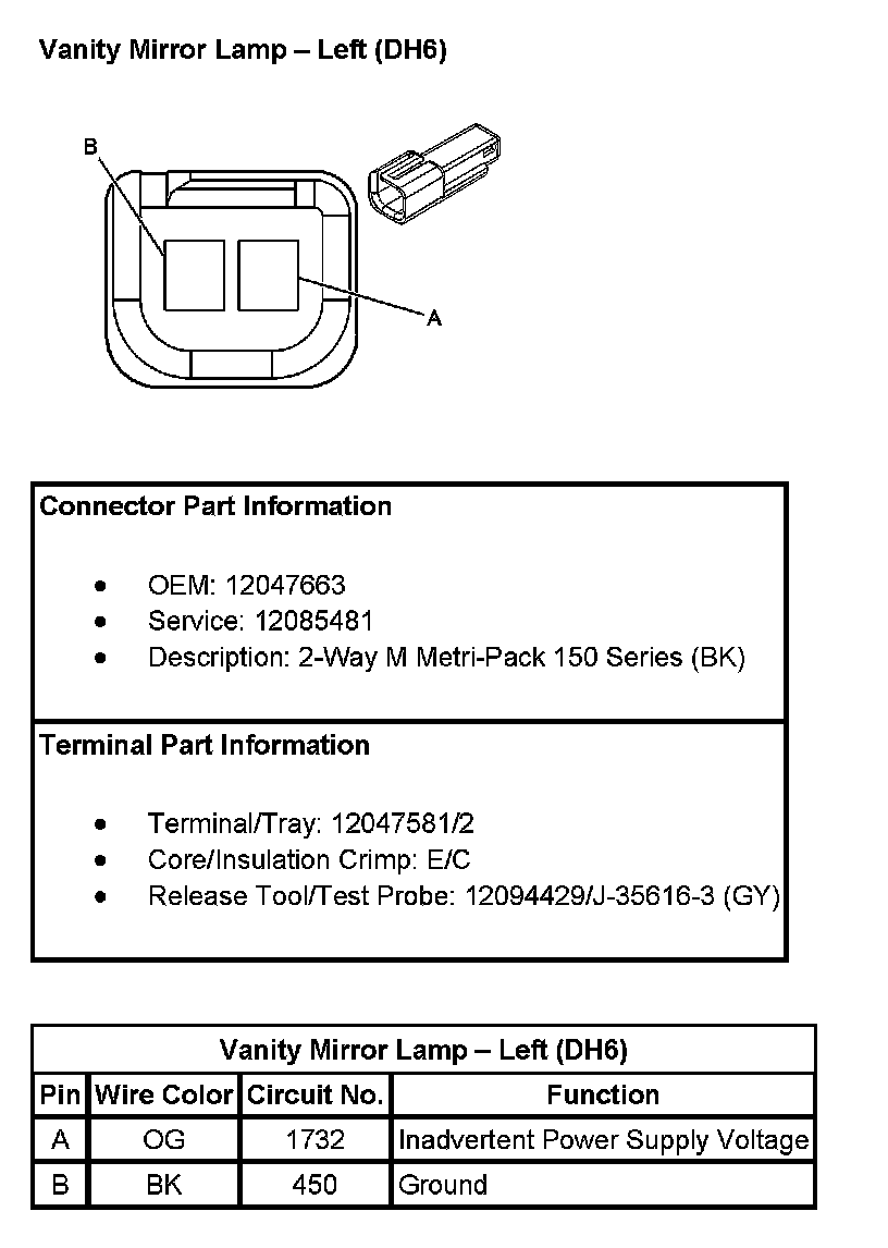 Vanity Mirror Lamp - Left (With RPO Code DH6):