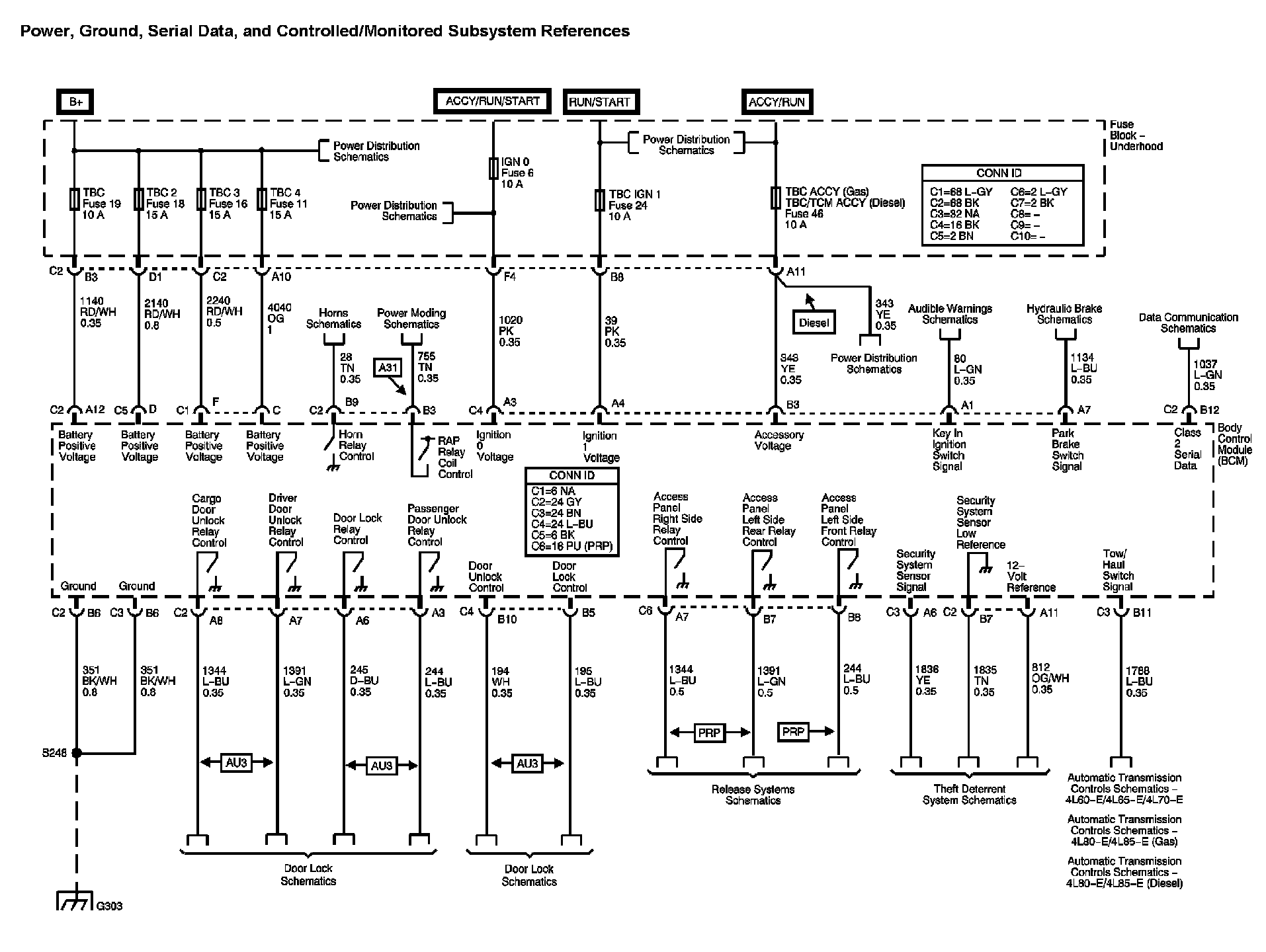 Locations: The locations for the Connectors, Grounds, Splices, and Grommets shown within these diagrams can be found via their numbers at Vehicle Locations. Locations