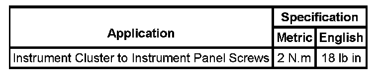 Instrument Panel, Gauges and Warning Indicators: Specifications