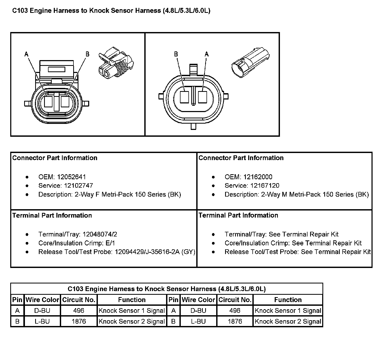 C103 Engine Harness To Knock Sensor Harness: