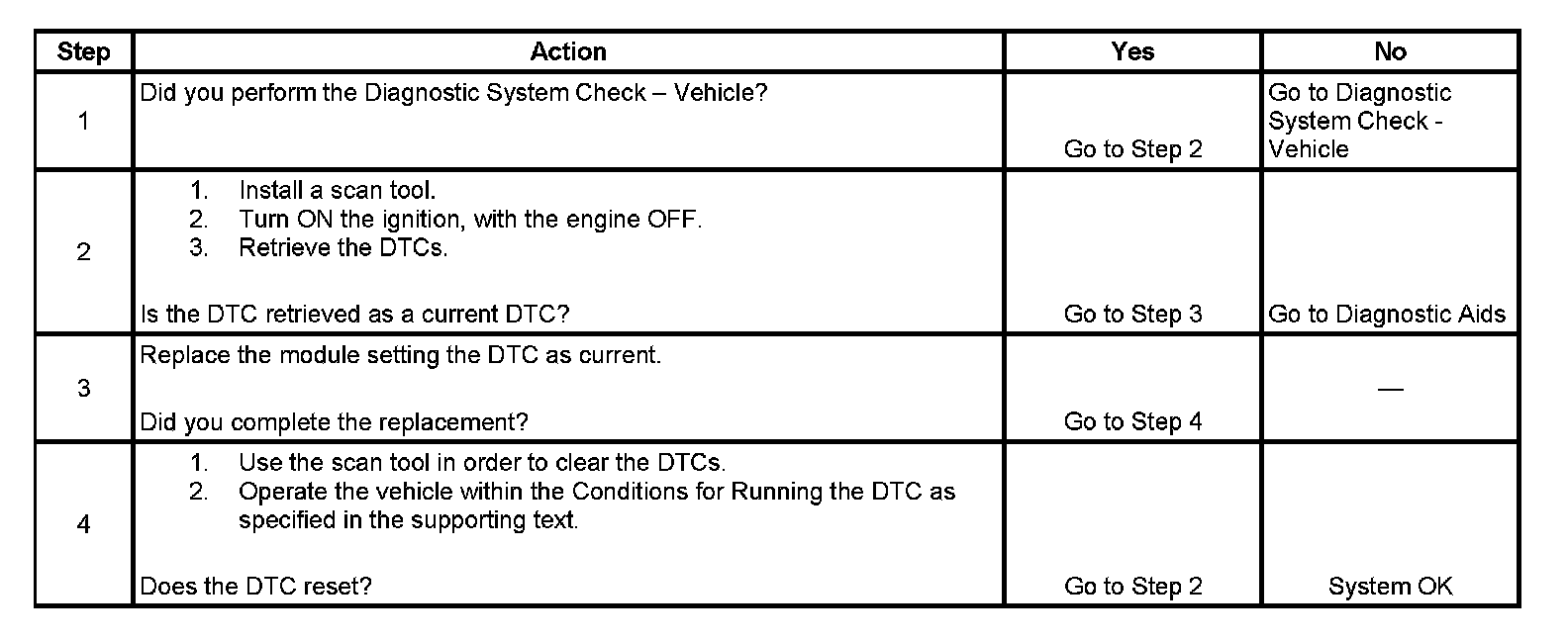 - If this DTC is retrieved as both a current and history DTC, replace the module.