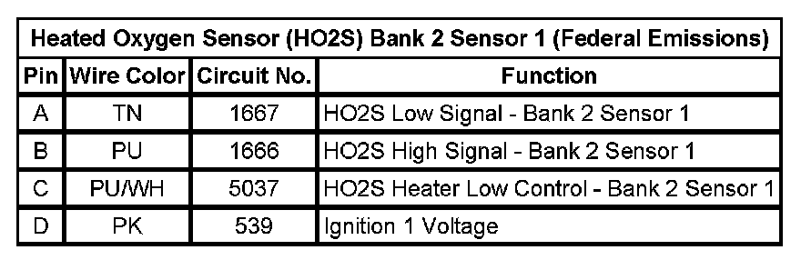 Heated Oxygen Sensor (HO2S) Bank 2 Sensor 1 (Federal Emissions)