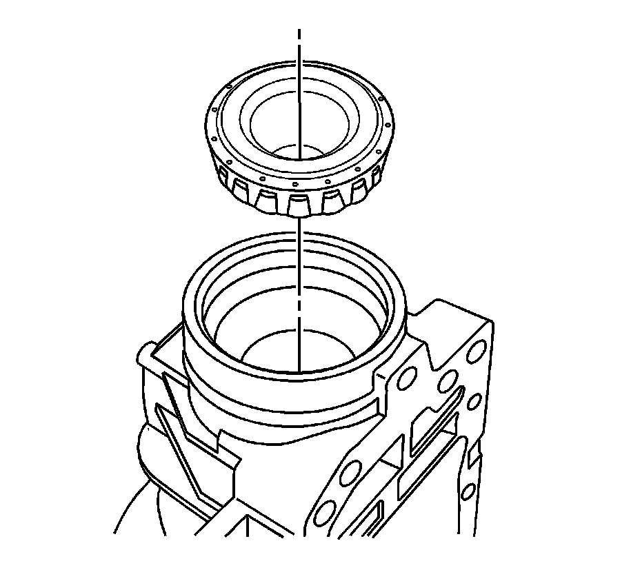 Seat the ridge of the J 45228-1 (2) into the outer pinion bearing cup bore.