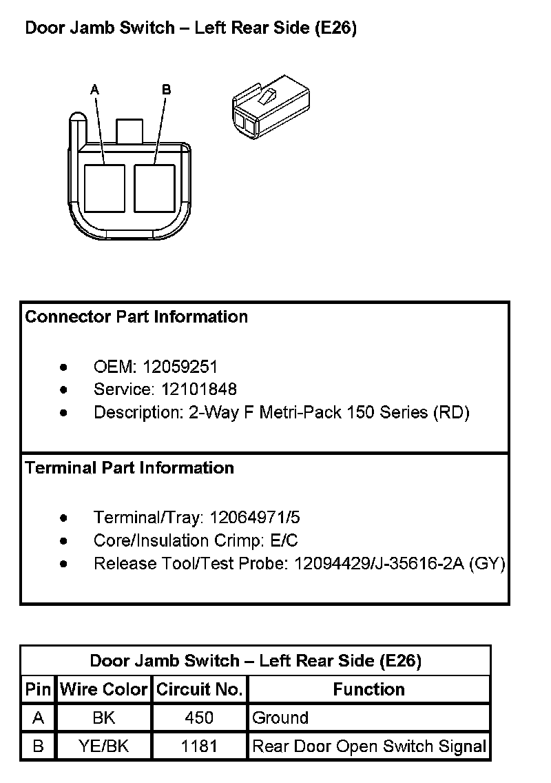 Door Jamb Switch - Left Rear Side (With RPO Code E26):