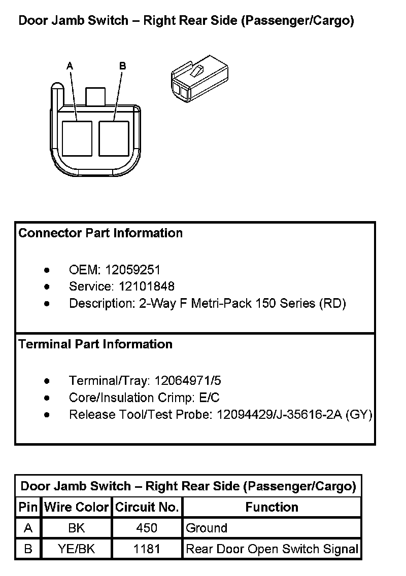 Door Jamb Switch - Right Rear Side (Passenger/Cargo):