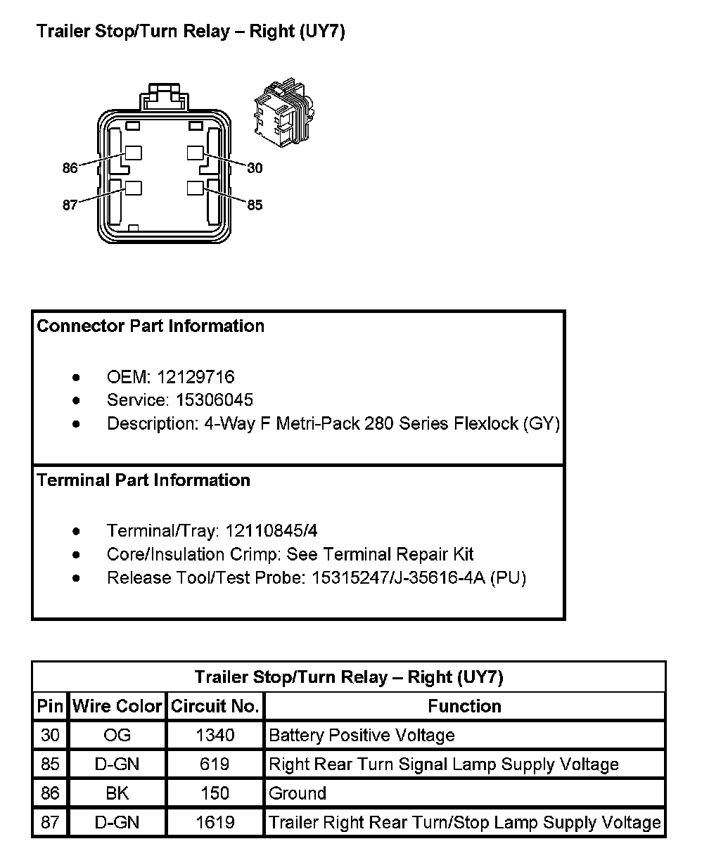 Trailer Stop/Turn Relay - Right (With RPO Code UY7):