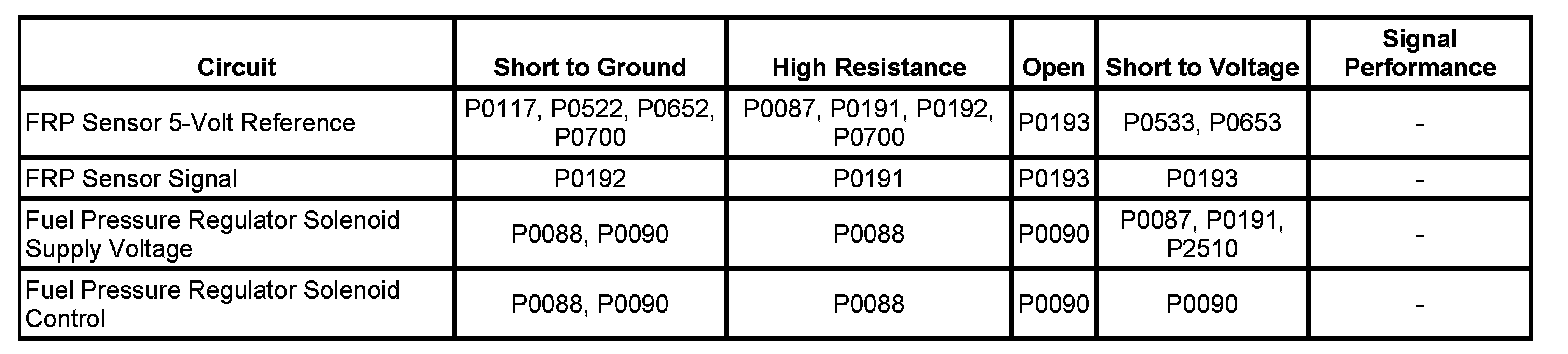 1. If DTC P0090, P0168 or P0191 is also set, Refer to Diagnostic Trouble Code (DTC) List - Vehicle. Diagnostic Trouble Code Descriptions