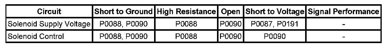 If DTC U0105, P0087, or P0088 are also set, Refer to Diagnostic Trouble Code (DTC) List - Vehicle. Diagnostic Trouble Code Descriptions