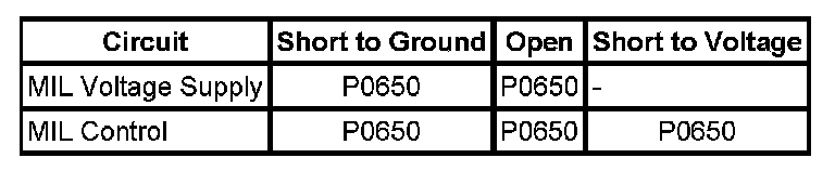 * DTC P0650 runs continuously when the ignition is ON.