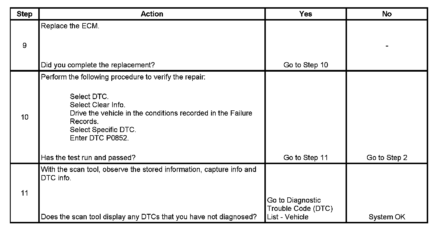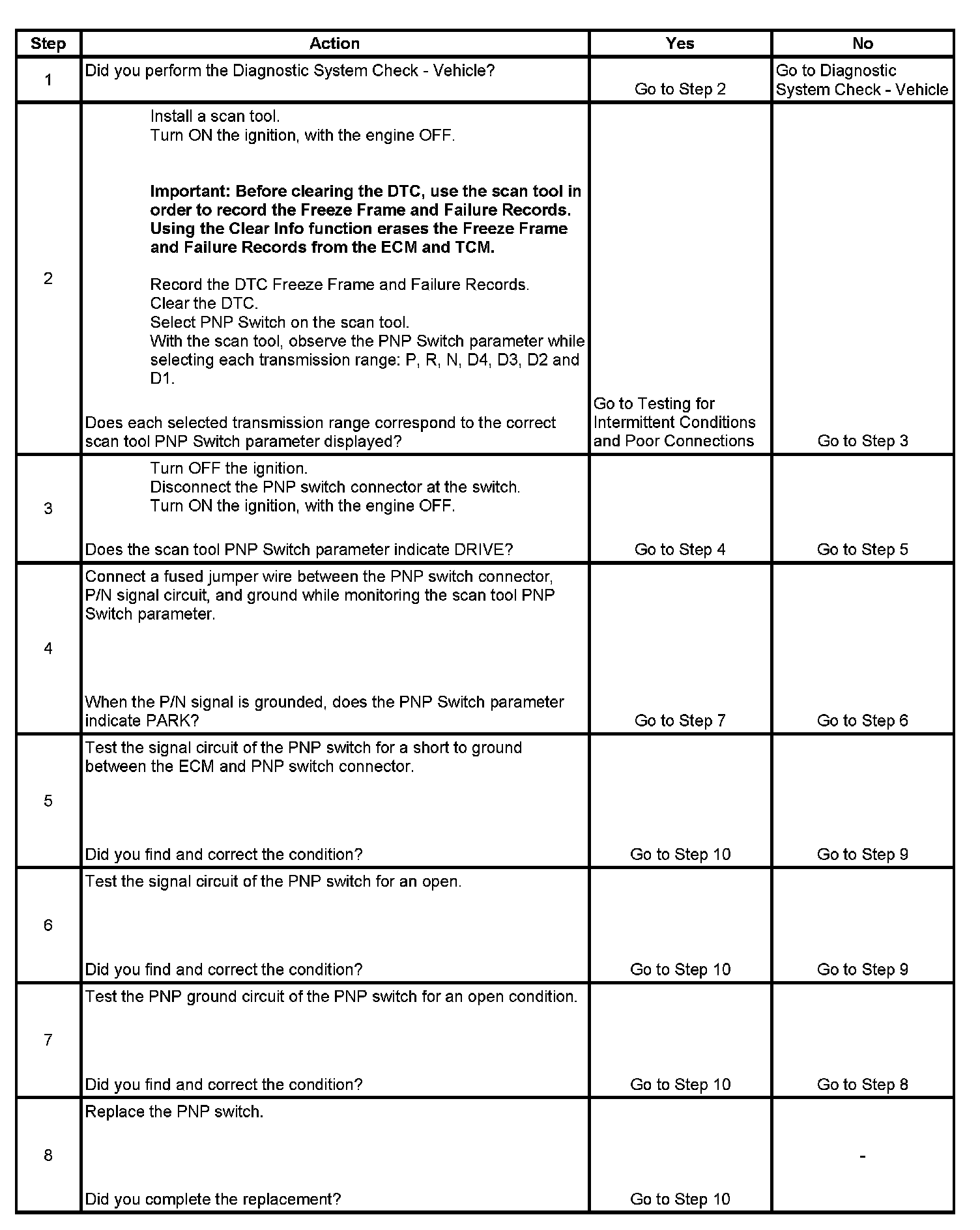 If the PNP switch signal indicates low when the vehicle is in motion for a specified length of time, DTC P0852 sets. DTC P0852 is a type C DTC.