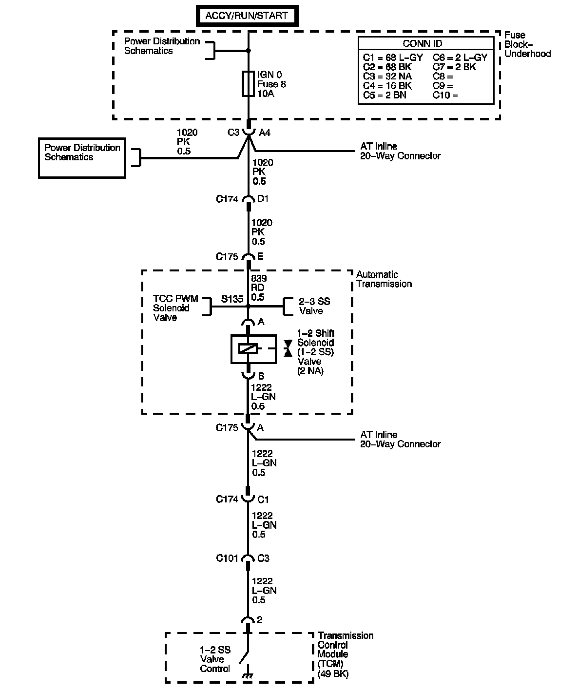 The TCM detects an open or short to ground in the 1-2 SS valve circuit for 4.4 seconds.
