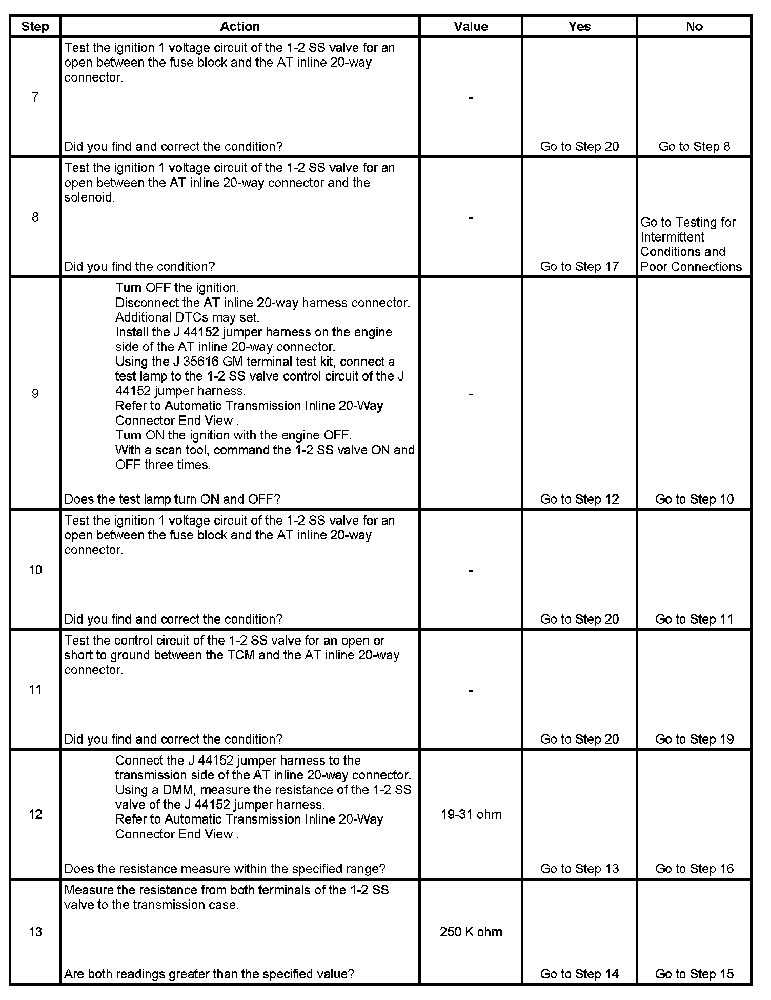 When the TCM detects a continuous open, short to ground in the 1-2 SS valve circuit, then DTC P0973 sets. DTC P0973 is a type B DTC.
