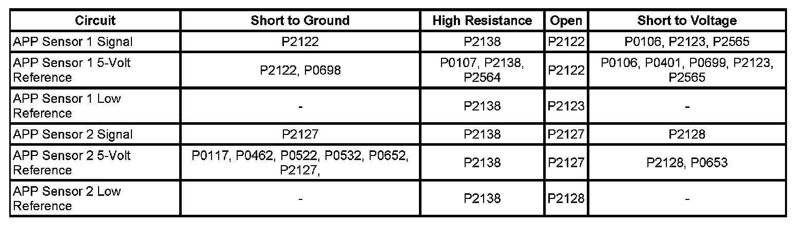 - Accelerator Pedal Position (APP) Sensor 1 Circuit High Voltage