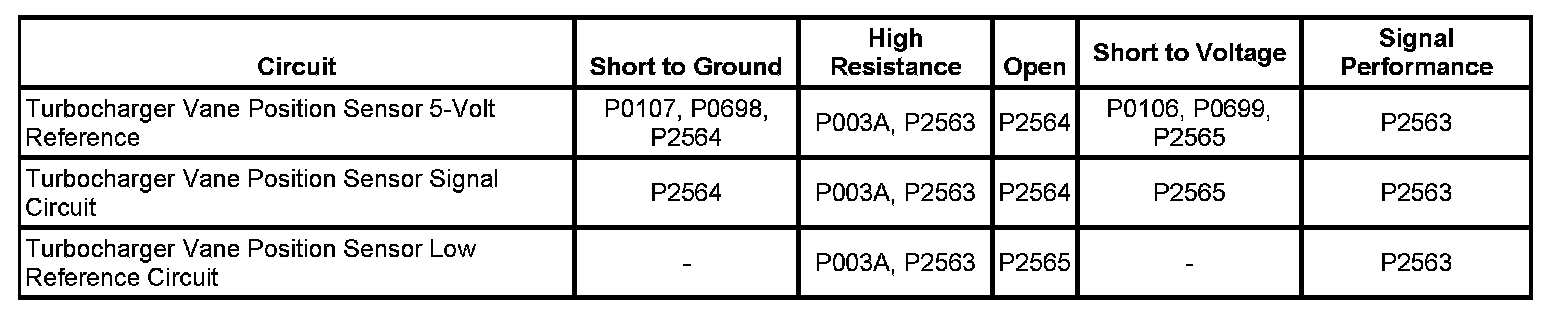 1. If DTCs P003A, P0045, P0698, P0699, P2564, P2565 are set, Refer to Diagnostic Trouble Code (DTC) List - Vehicle for further information. Diagnostic Trouble Code Descriptions