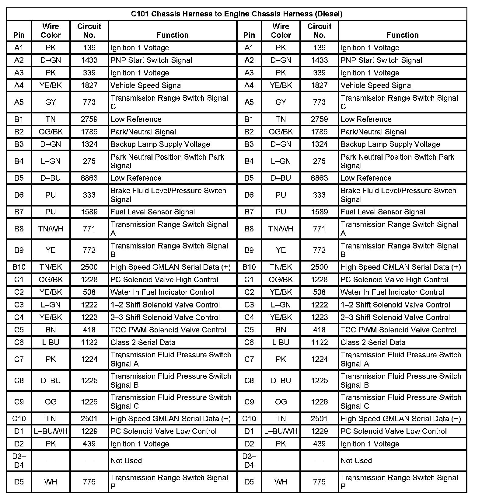 C101 Chassis Harness To Engine Chassis Harness (Diesel):