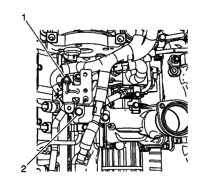 5. Remove the connector bracket bolt (2) and nut (1), and reposition the bracket.