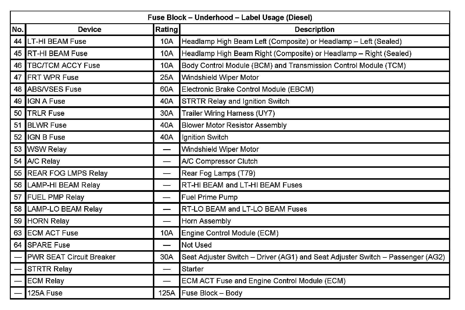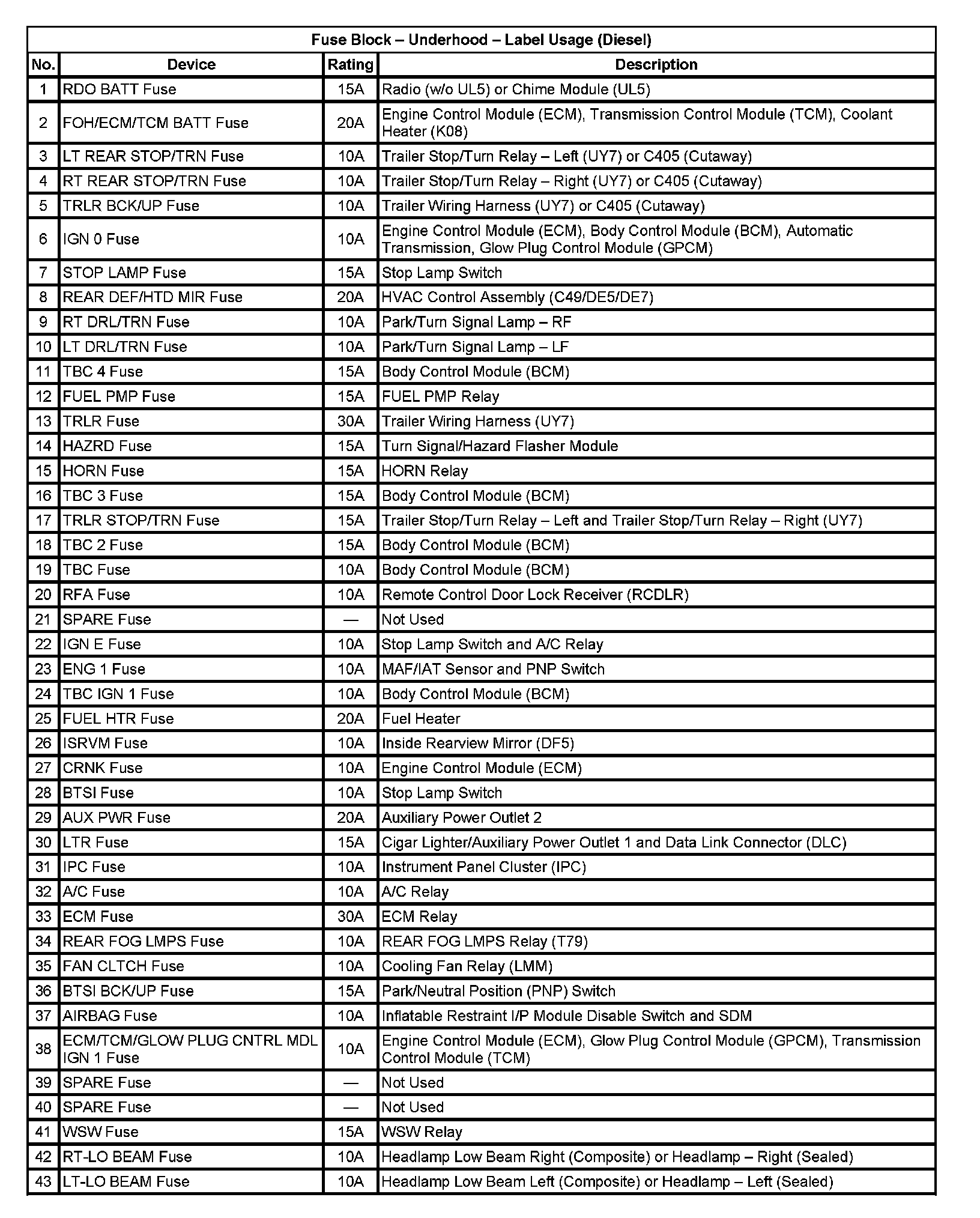 Fuse Block - Underhood - Label Usage (Diesel) (Part 1):