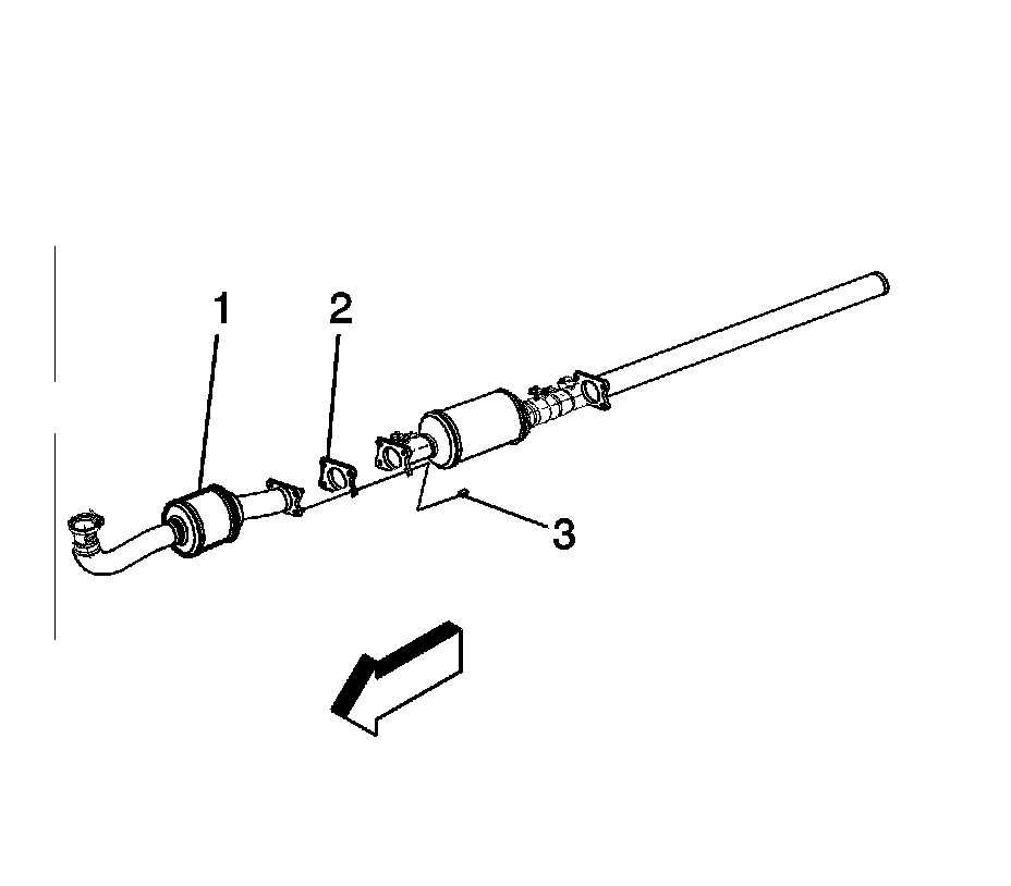 4. Install the catalytic converter to particulate filter nuts (3) until snug.