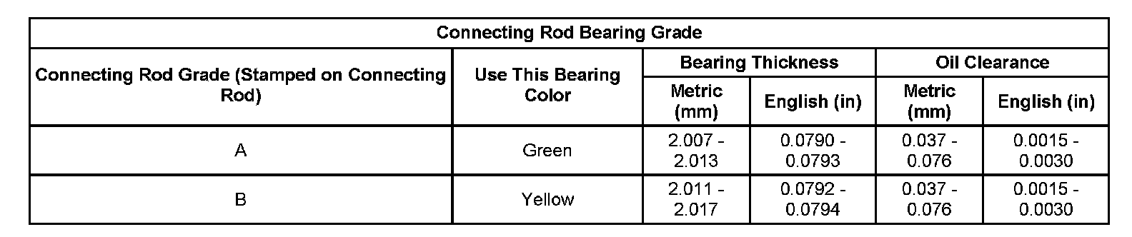 Connecting Rod Bearings Selection Specifications: