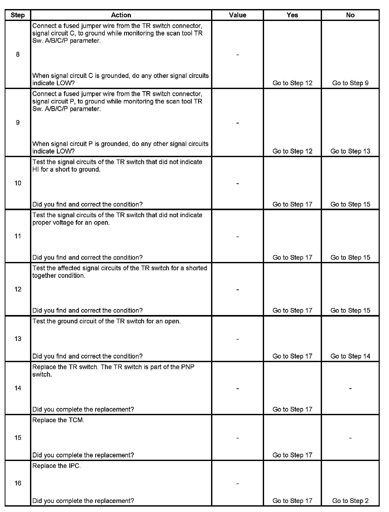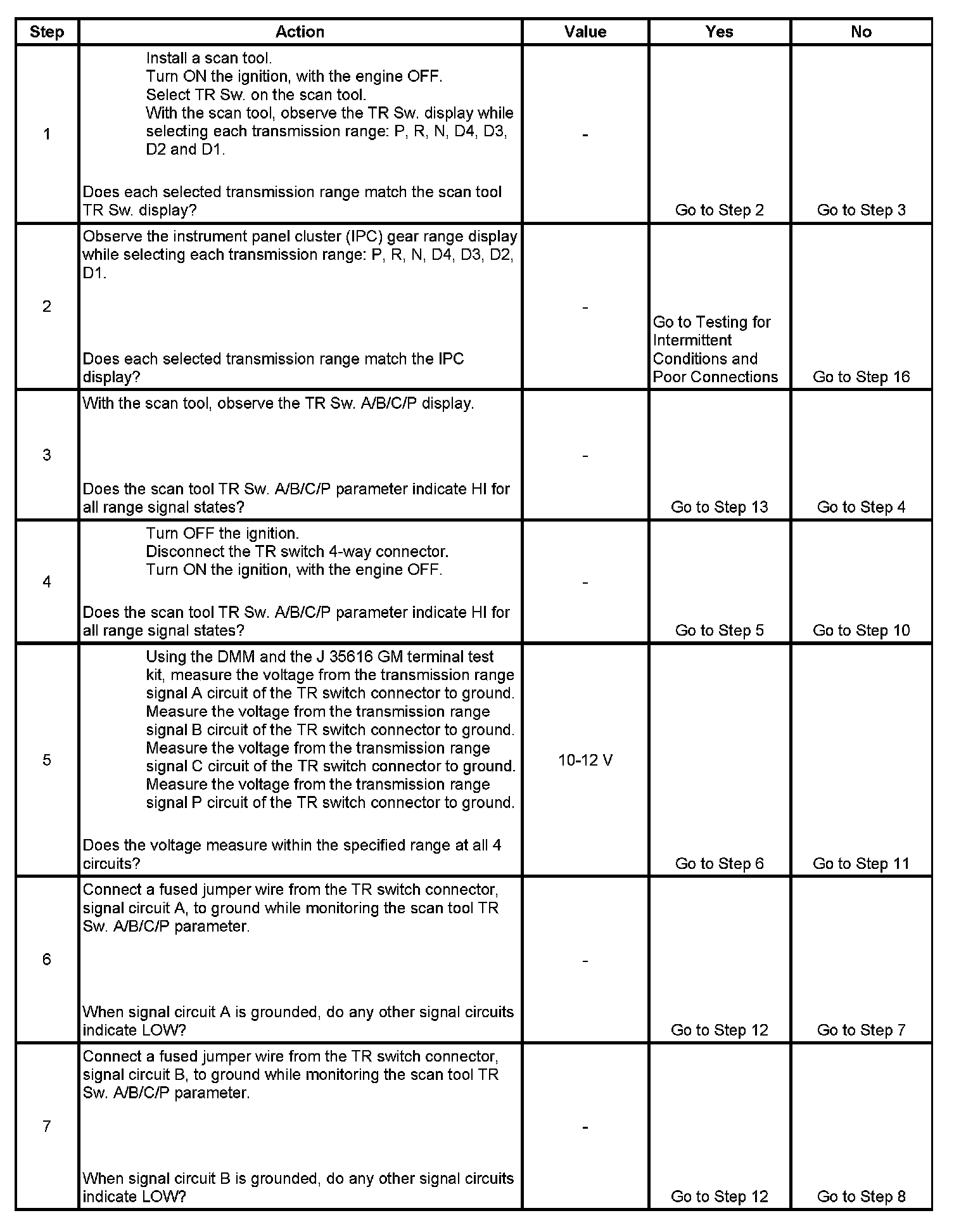 5. This step tests the TR switch wiring for an open or the lack of the signal voltage from the TCM.