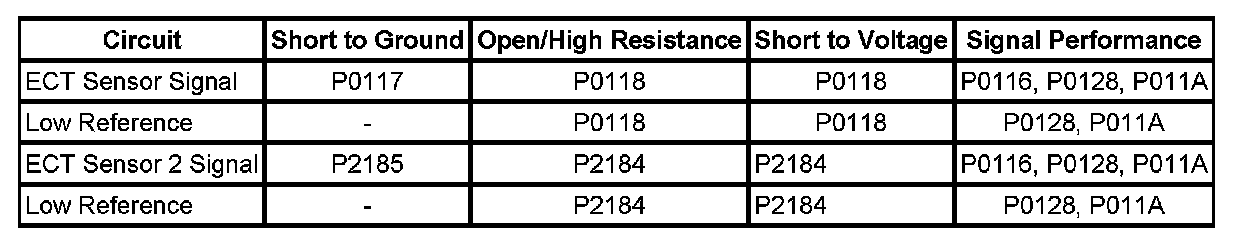 * DTCs P0117, P0118, P0128, P2184, P2105 are not set.