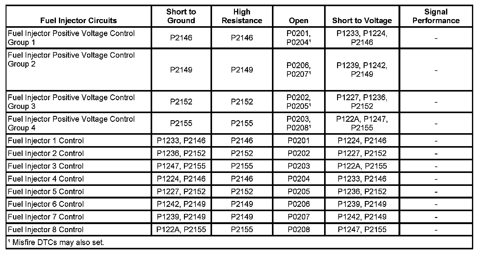 One Fuel Injector DTC Sets