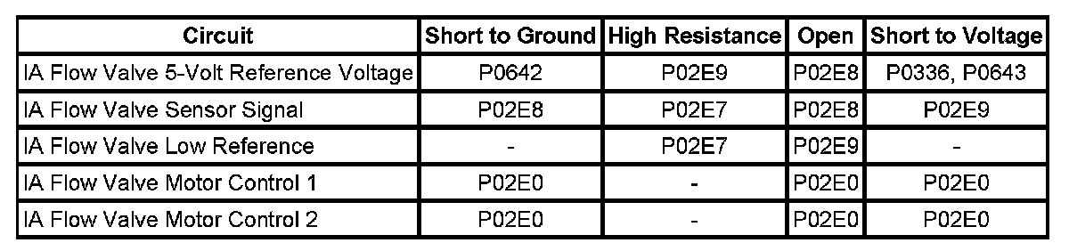 The difference between the desired IA Valve position and the actual IA Valve position is more than 3 percent for 10 seconds.