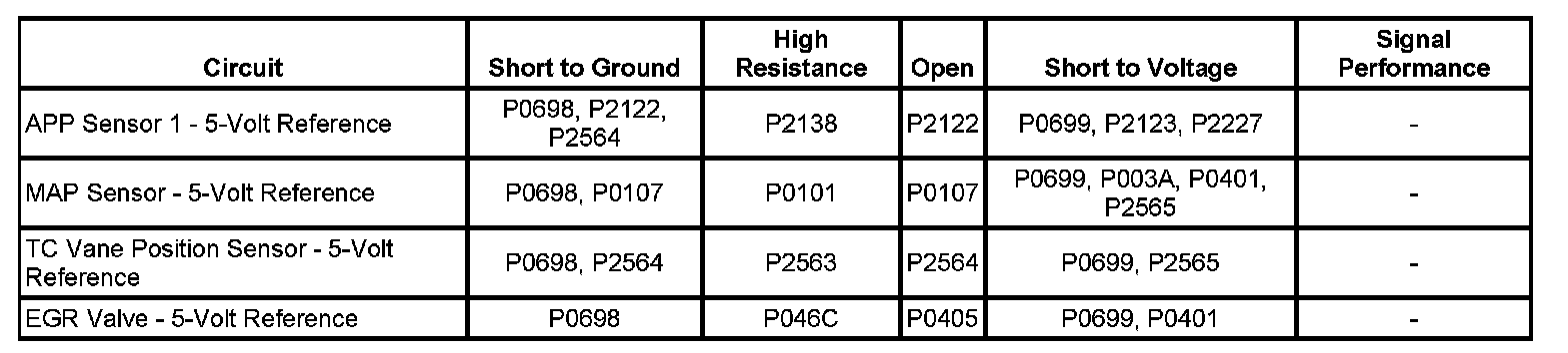 These 5-volt reference circuits are independent of each other outside the engine control module (ECM), but are bussed together inside the ECM. Therefore, a circuit condition on one sensor 5-volt reference circuit may affect the other sensor 5-volt reference circuits. The ECM monitors the voltage on the 5-volt reference circuit.