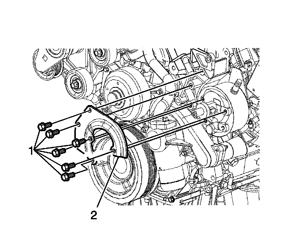 23. Remove the power steering pump bracket (2) from the pump.
