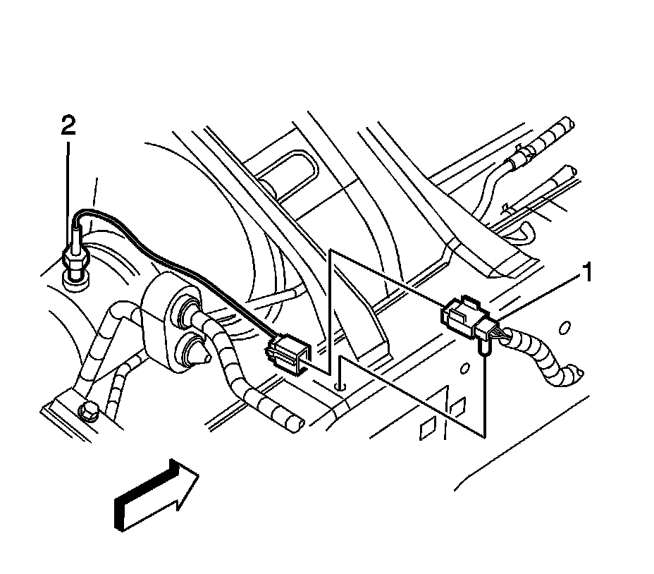 2. Disconnect the exhaust temperature sensor (2) electrical connector from the engine wiring harness electrical connector (1).