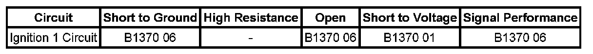 The inflatable restraint sensing and diagnostic module (SDM) monitors the ignition 1 signal from the ignition switch. When the vehicle ignition switch is placed in the RUN or CRANK position the switch supplies voltage to the SDM ignition 1 input terminal. If an open, short to voltage, or short to ground in this SDM ignition 1 circuit is detected then DTC B1370 will set.