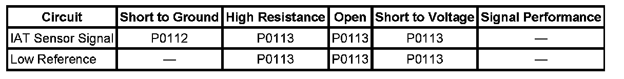 * An IAT sensor signal circuit that is shorted to the MAF sensor ignition circuit can cause a DTC P0113 to set.