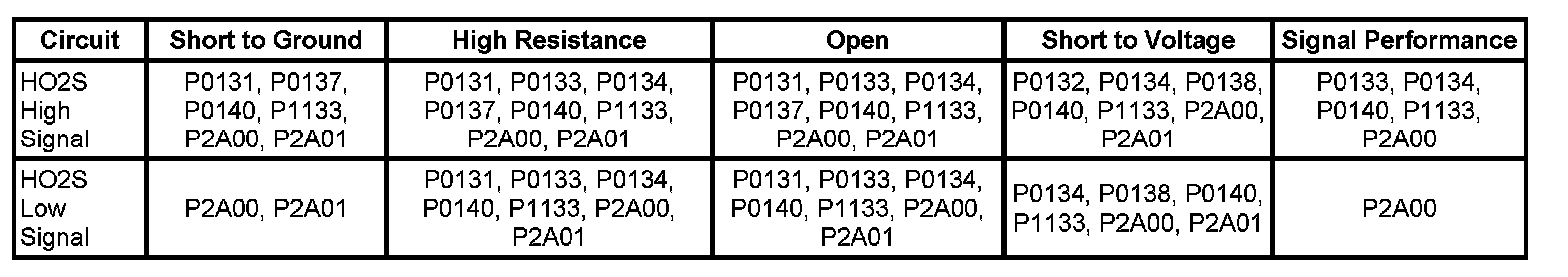 * The ECM detects that the HO2S 1 Voltage parameter is less than 50 mV.